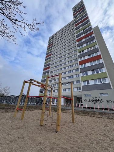 Fassadenbau, Außenanlagen, Spielplätze, Parkplatzmarkierungen, Fahrradständer und Umzäunungen – perfekt geplant, meisterhaft umgesetzt und auf Jahrzehnte ausgelegt.