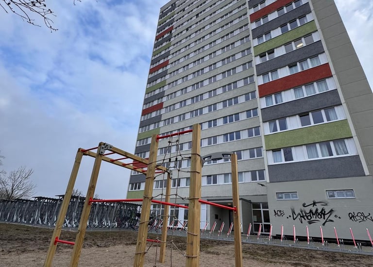 Von der in die Jahre gekommenen Fassade zum modernen, energieeffizienten Blickfang – trotz nachträglicher Graffitis unverkennbar aufgewertet.